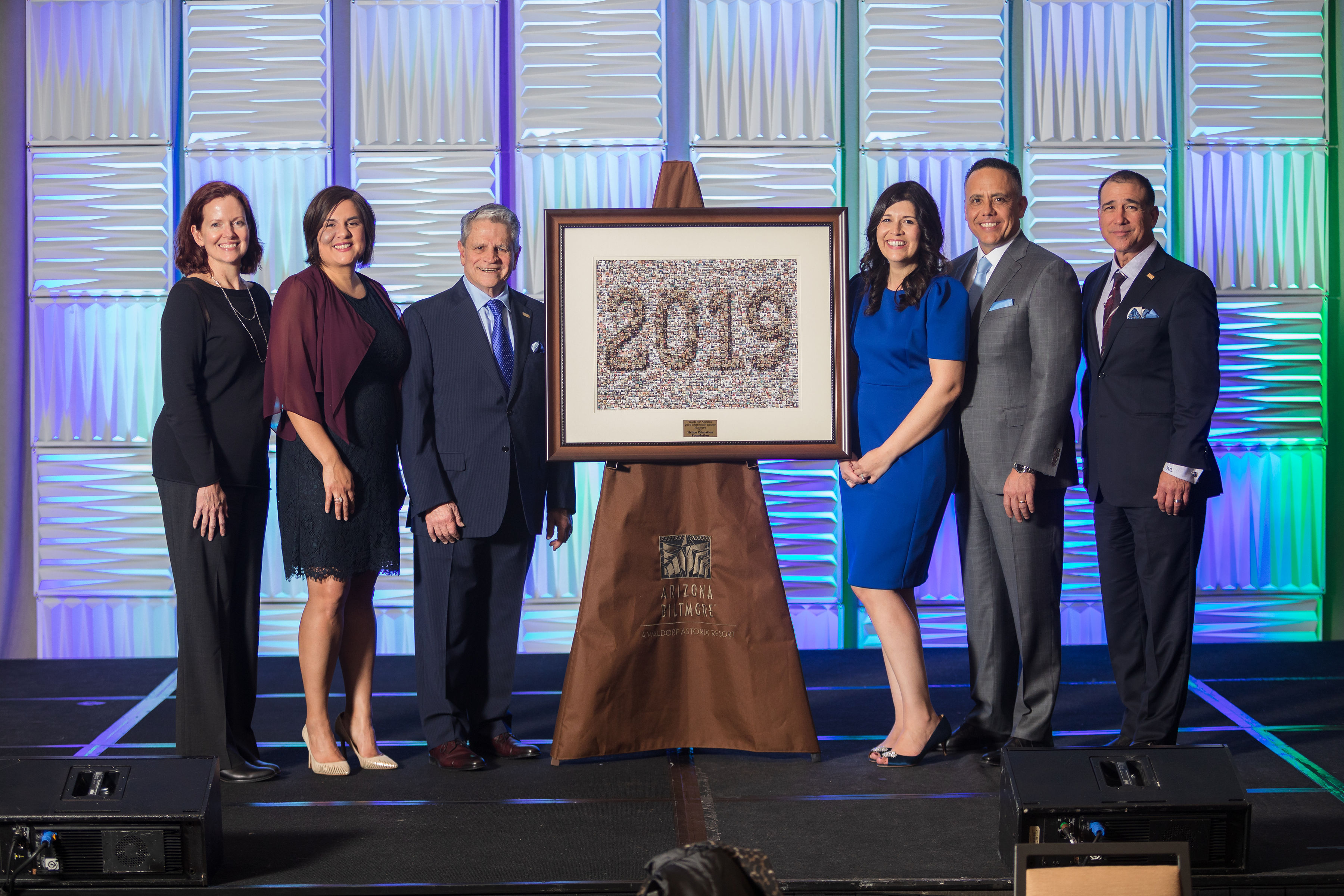 Barbara Ryan Thompson, Vince Roig and Paul J. Luna pictured with TFA leadership at their 25th anniversary celebration in 2019.