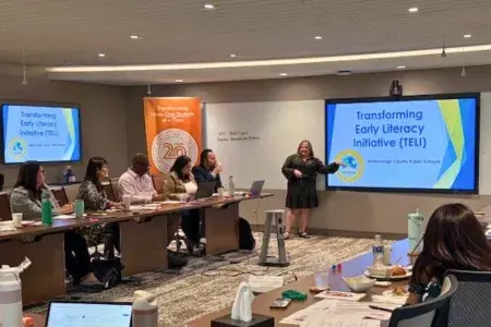 Recently, leaders from both programs, practitioners, Helios and Equal Measure—a national evaluation firm that has partnered with TELI and PELI since the start of both investments—came together for a learning exchange designed to move beyond program updates and into shared learning across county lines. Over several years, teams have gathered feedback from coaches, teachers, and administrators to better understand how the initiatives are influencing literacy instruction and to make real-time improvements to program delivery. Rather than treating evaluation as a retrospective exercise, both initiatives have used it as a learning tool that supports reflection, adaptation, and continuous improvement.