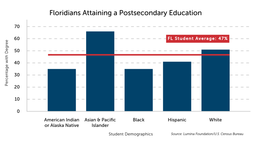 The following charts highlight the opportunity gaps among students in Arizona and Florida in our three areas of focus.